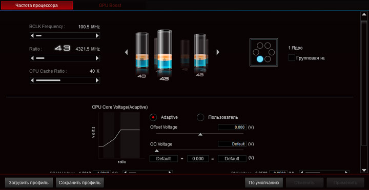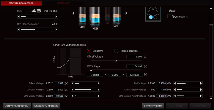 У процессорного напряжения есть поддержка в лице восьми профилей LLC.