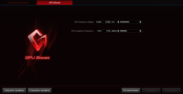 | CPU Graphics Voltage Offset (В) | (+/–) 0,005–0,635 | 0,005 |