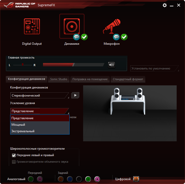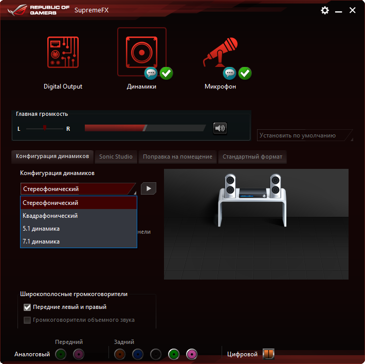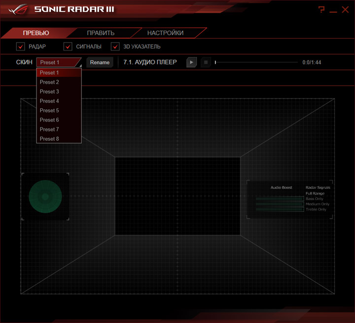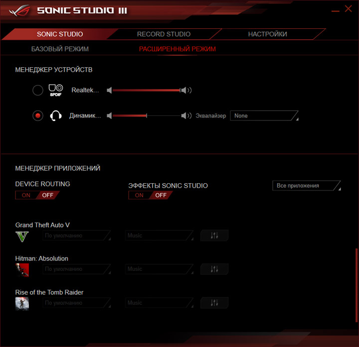 Для изменения окраса предусмотрен фирменный комплекс Sonic Studio. Версия та же, что шла в наборе с платами прежних поколений.