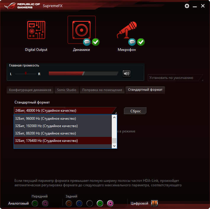 Конфигуратор звука от Realtek имеет в наличии всего два типа профилей подключаемого оборудования, их перебор, на мой взгляд, заметного эффекта не даёт, но реализация кодека мне понравилась. Подачу материала я могу оценить как весьма хлёсткую, быструю, с достаточно точным позиционированием источников звуков.
