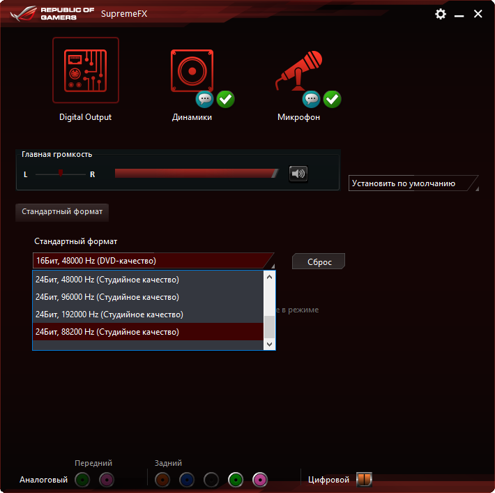 | Встроенный звук | SupremeFX (7.1, HDA): Codec — S1220 (Realtek ALC1220) Op Amp — Texas Instruments RC4580 и OPA1688 |
