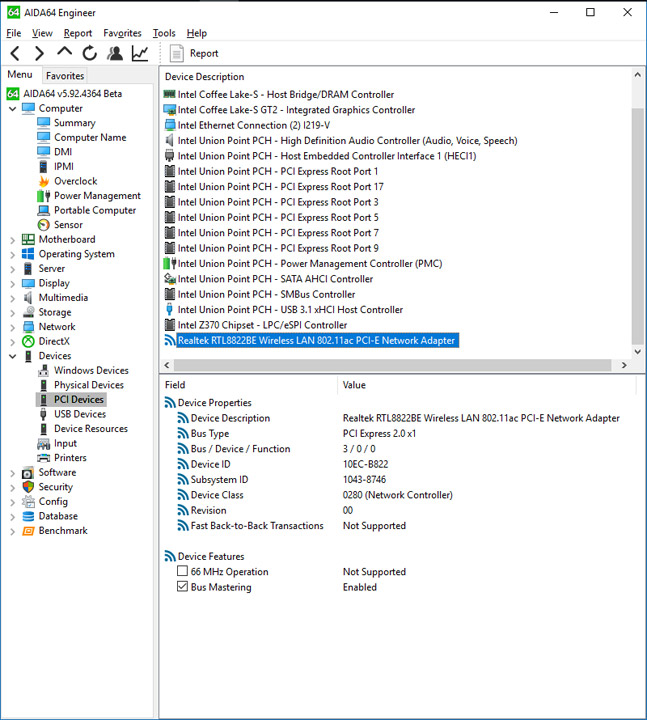 К слову о беспроводном адаптере. Здесь воспользовались двухдиапазонным модулем от Realtek, впервые на моей памяти в составе устройств от ASUS. Проблем с поиском и установкой драйверов не было никаких. Данные о нём выглядят так: