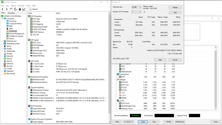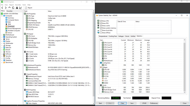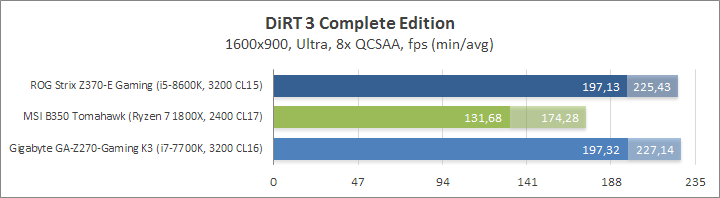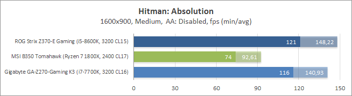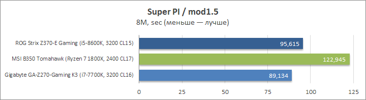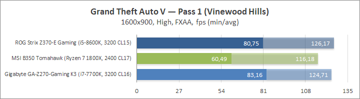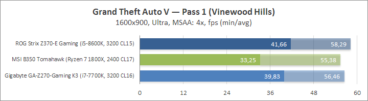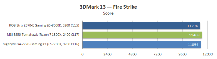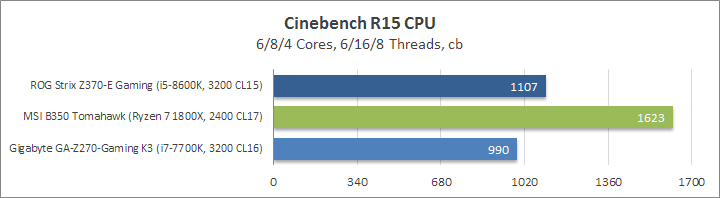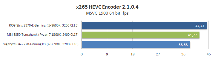 | ЦП, действующая частота (МГц) | Intel Core i7-7700K, 4500 | AMD Ryzen7 1800X, 3700–4100 | Intel Core i5-8600K, 4300 |