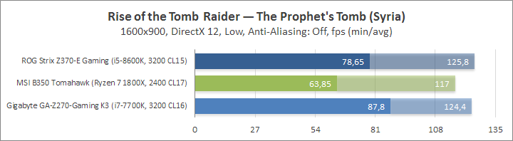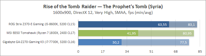 В Rise of the Tomb Raider итоговая картина смазана из-за резкого повышения производительности системы, появившегося в результате обновления ПО (а именно сборки(ок) Windows 10). Как бы там ни было, обновлённый Core i5-8600K однозначно может быть рассмотрен как основа для рабочей станции, в равной степени он заслуживает внимания и при сборке игровой системы.