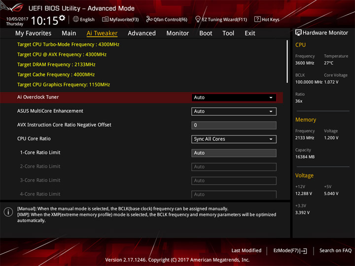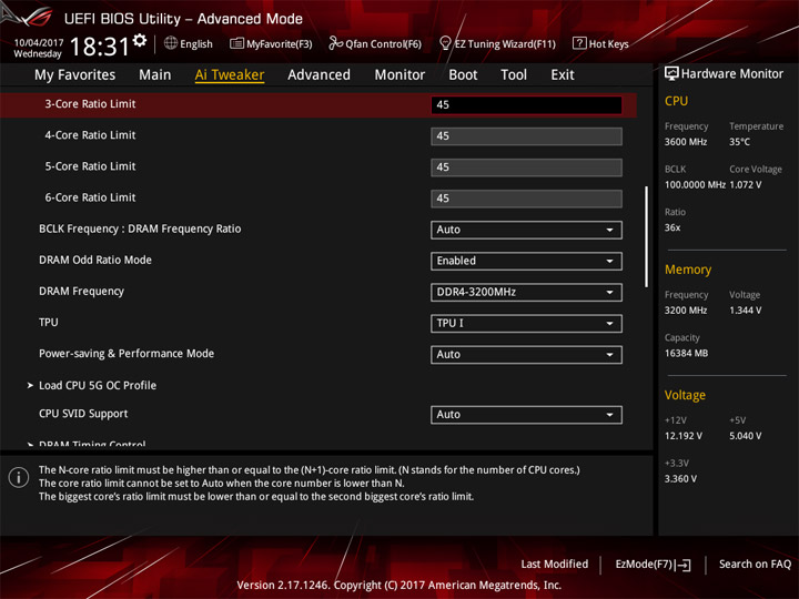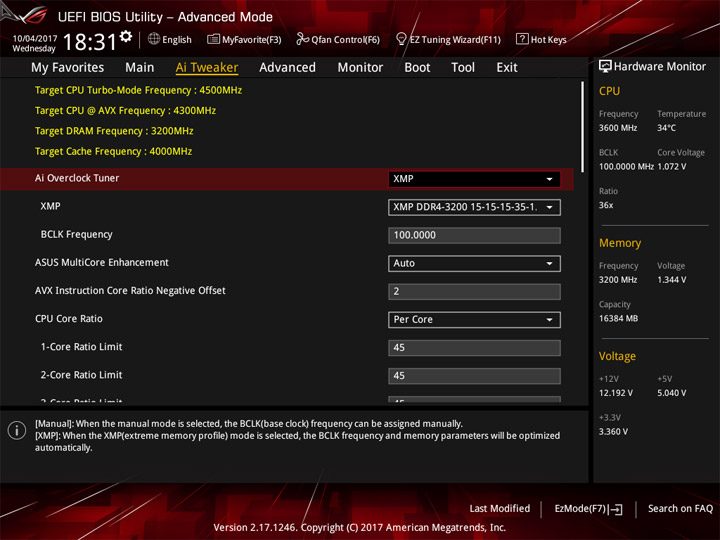 Проверим давно известные пару пунктов от ASUS — фирменные механизмы TPU. Уже первый плотно начинает работать с памятью, используя XMP. Для процессора форсируется формула 4,5 ГГц. IO и SA Voltage растут так же, как и при обычном использовании XMP. Рост напряжения у ЦП остаётся на совести платы. Главная особенность — использование AVX Negative Offset.