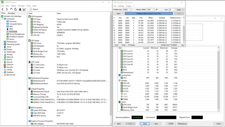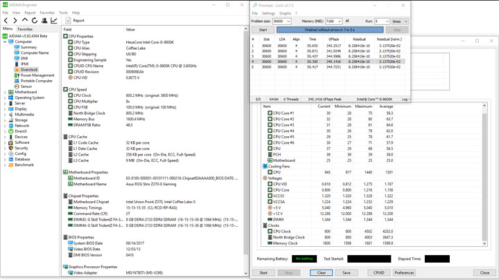 Приём действительно срабатывал, в пиковые моменты функционирования LinX частота Core i5-8600K снижалась до 4,3 ГГц. Вся остальная нагрузка повышала его множитель до «45». В общем итоге, все тестовые сценарии оказались работоспособными, похвально как для готового профиля материнской платы.