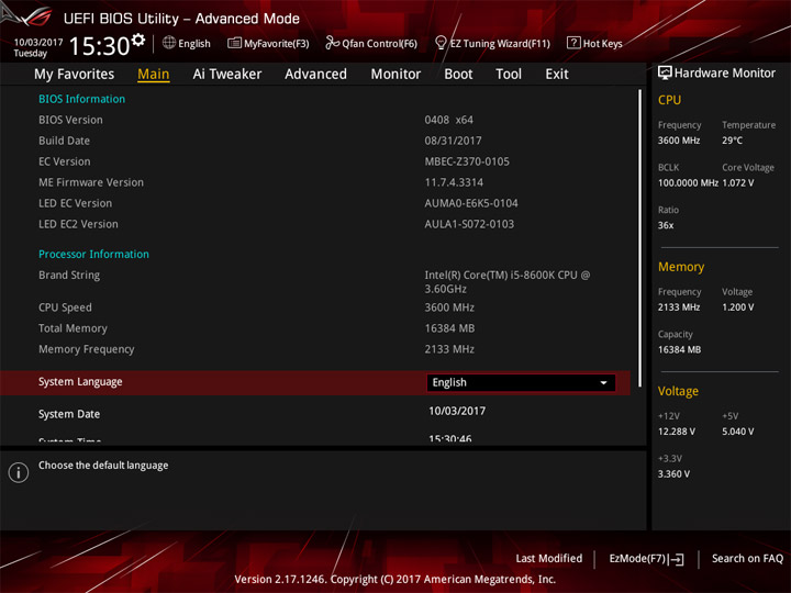 Внешний вид меню UEFI не поменялся по сравнению со старыми продуктами этого вендора. Для обновления прошивки я использовал Ez Flash — фирменное средство, доступное прямо здесь.