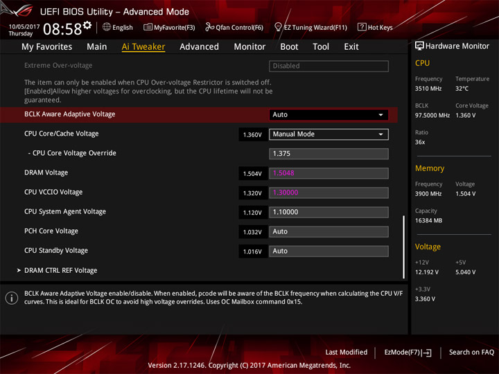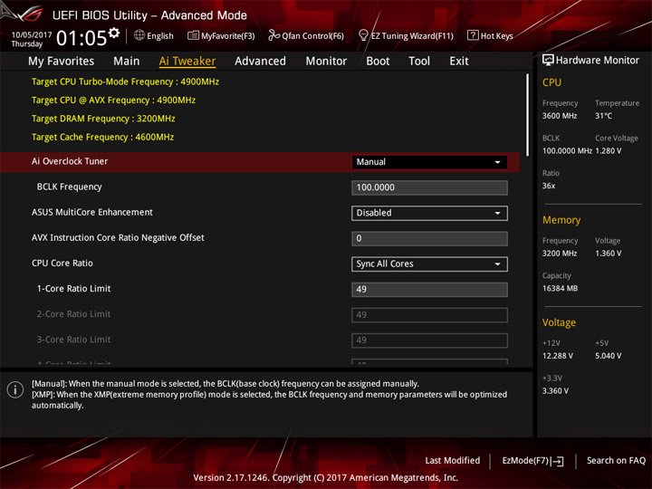 Эксперименты с поиском действительно стабильной частотной отметки превратились в соревнования с LLC. Похоже, специалисты ASUS недооценили нрав новых процессоров, иначе недостаточность всех восьми (!) профилей я охарактеризовать не могу. Быть может, что-либо получится изменить путём обновления прошивки, но сегодня стабилизация процессорного напряжения (особенно при нагрузках в стиле AVX) не выдерживает никакой критики. В меру стабильным процессор оставался на частое 4,9 ГГц. В UEFI напряжение для него я выбирал равное 1,30 В. Но уже в простое оно составляло 1,28 вольт.