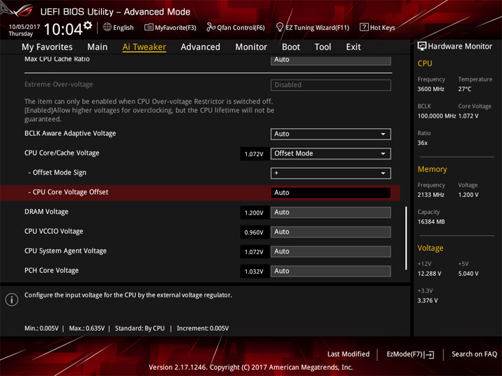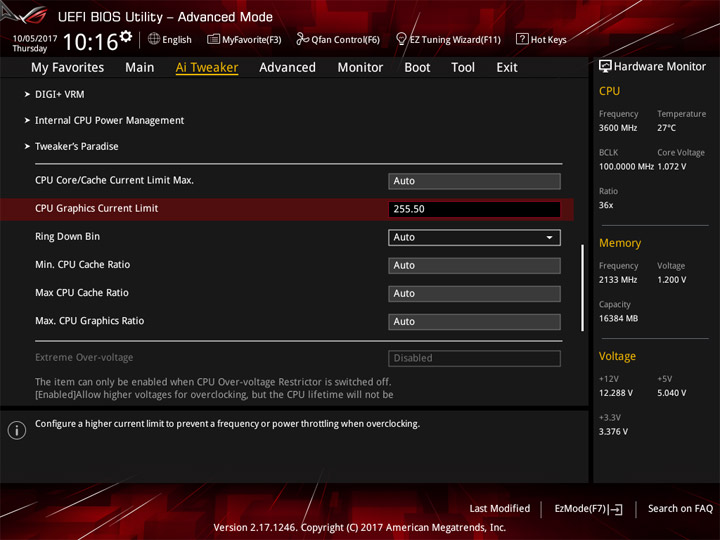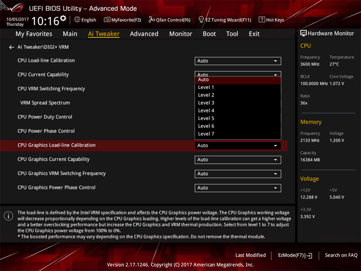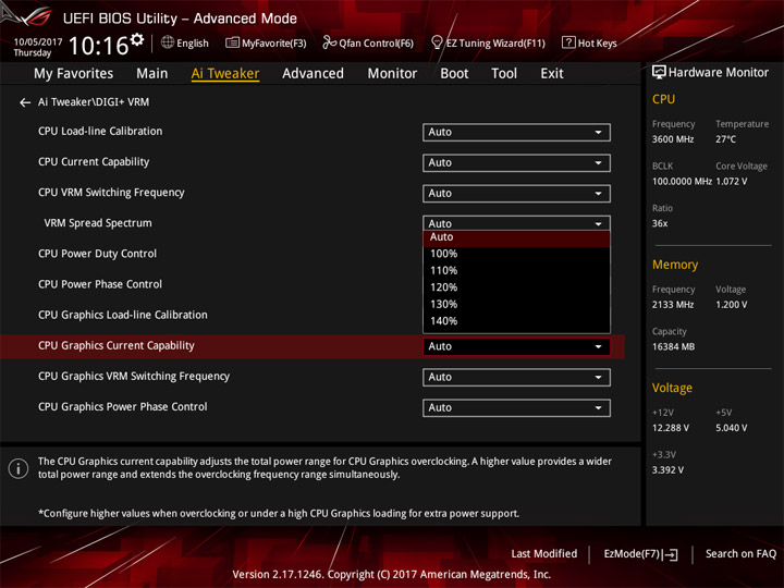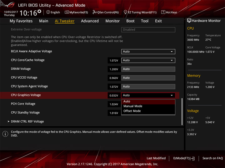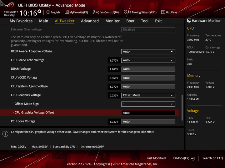 | CPU Graphics Voltage Override (В) | 0,6–1,7 | 0,005 |