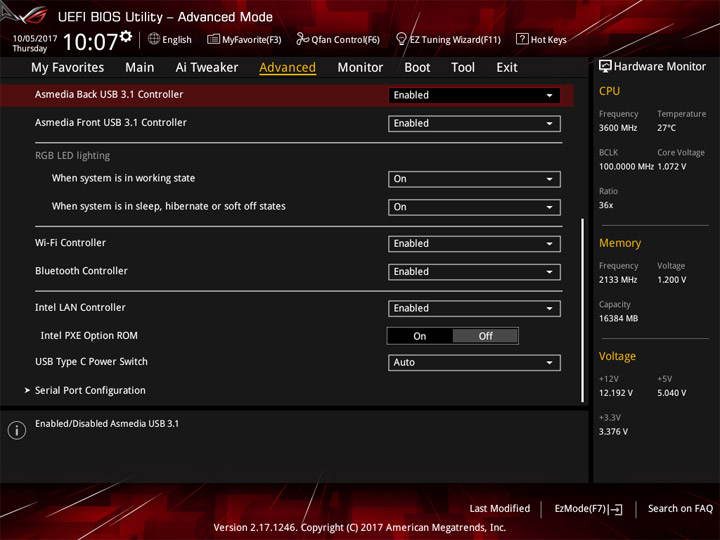 Настройка периферии происходит на вкладке Advanced. Подсветку отсюда можно лишь деактивировать, а для вдумчивой работы с ней потребуется установить специальное ПО.