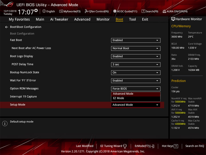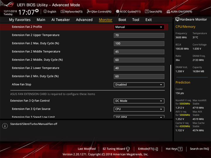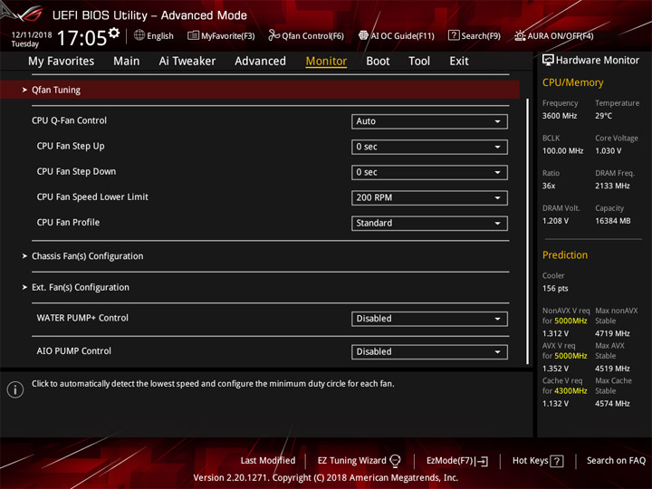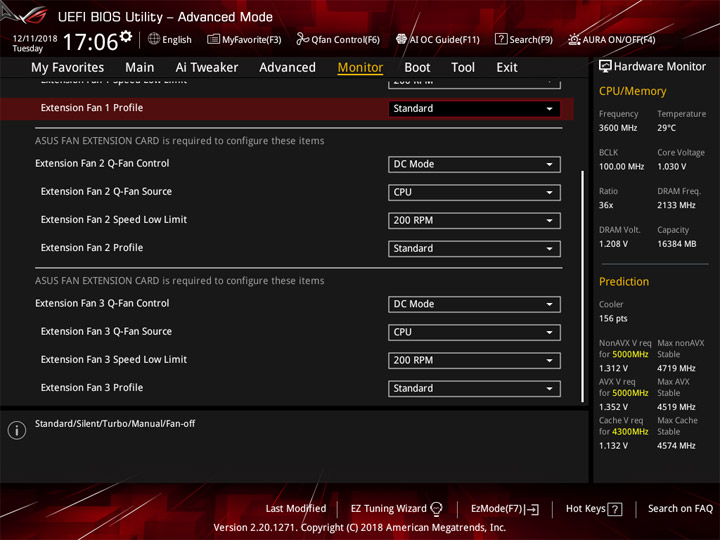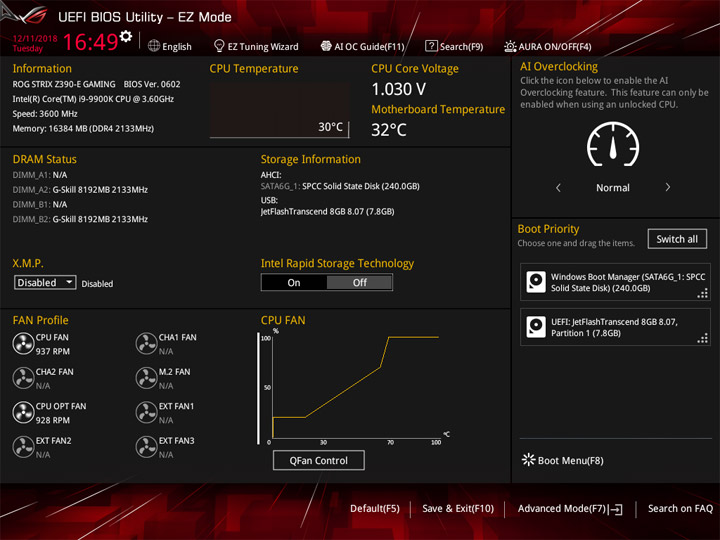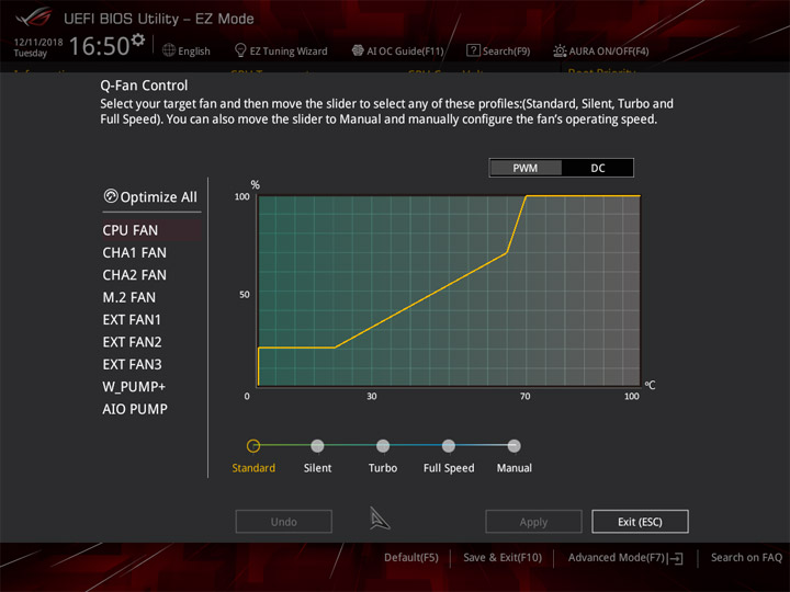 Упрощённое меню предназначено для базовых вещей: выбор локализации, установка даты, времени, модификация списка и порядка в нём загрузочных устройств. При желании, можно активировать XMP. Контроль работы вентиляторов производится в отдельном меню — QFan Control.