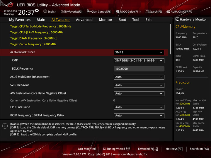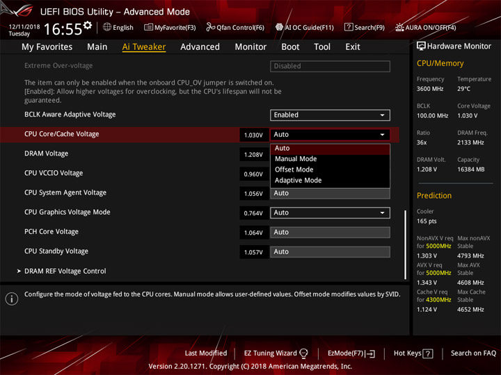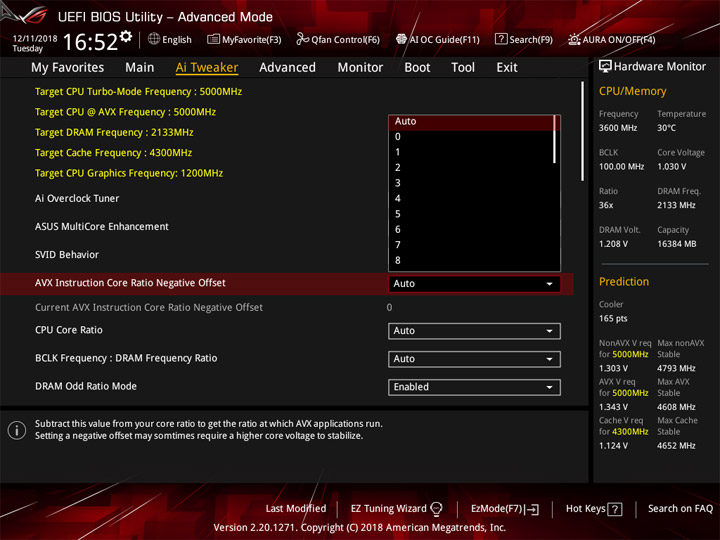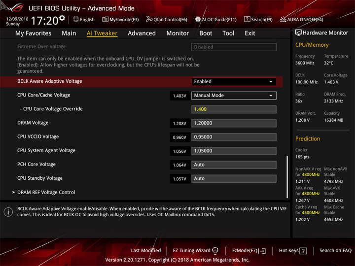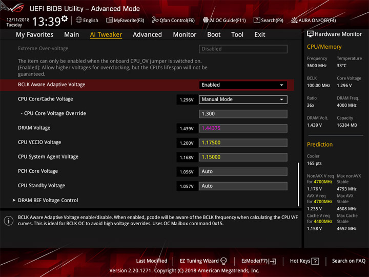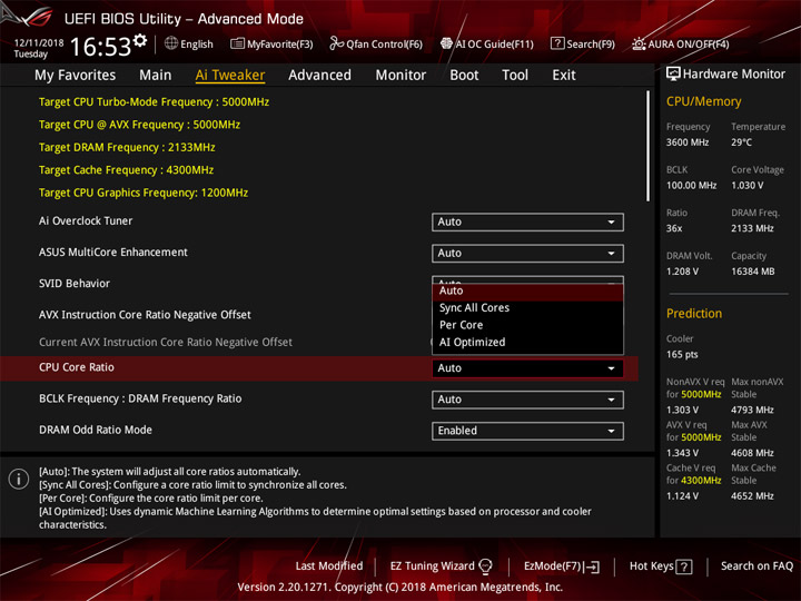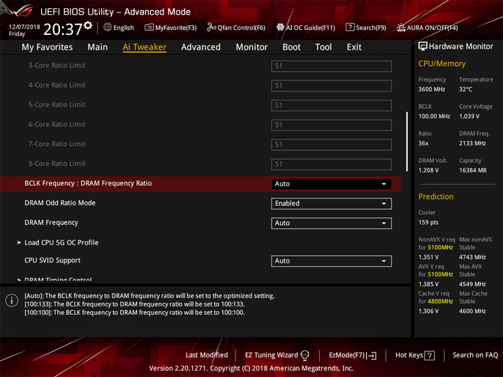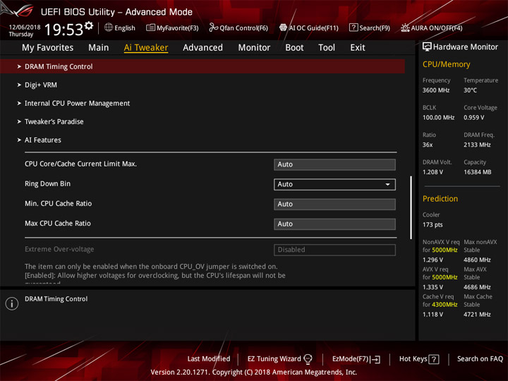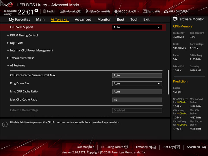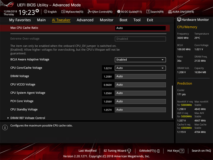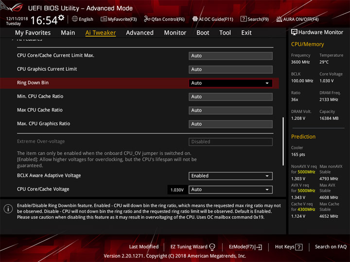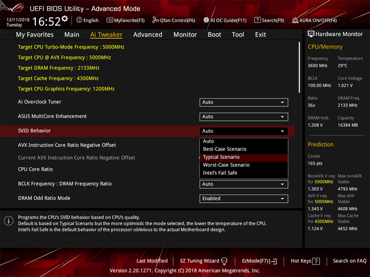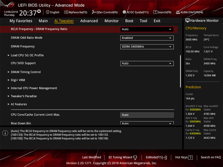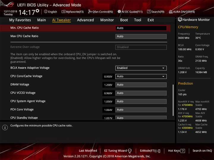 Структура и наполнение рубрики Ai Tweaker осталась прежней — здесь сконцентрированы механизмы под разгон системы. Обновился информационный уголок в правом нижнему углу экрана, там действующие напряжения сменились своеобразным паспортом для используемого ЦП и его кулера.