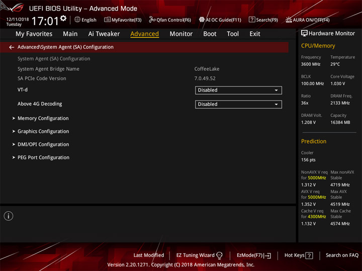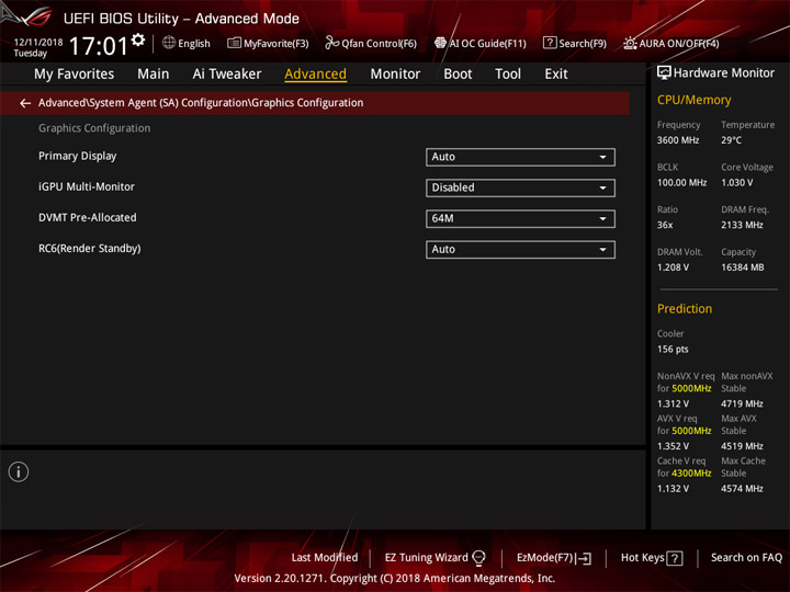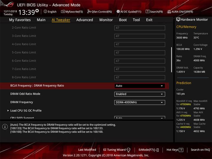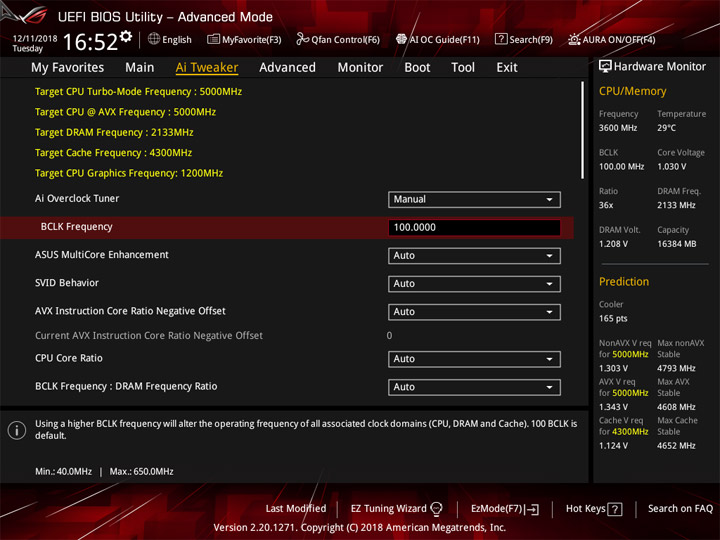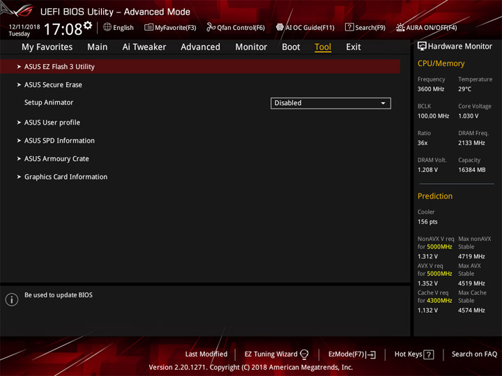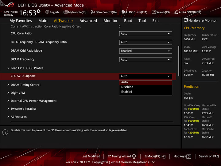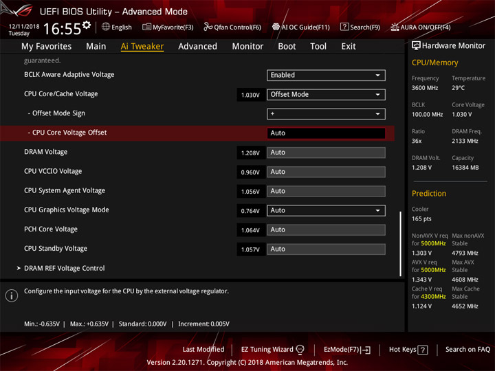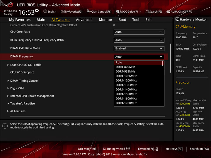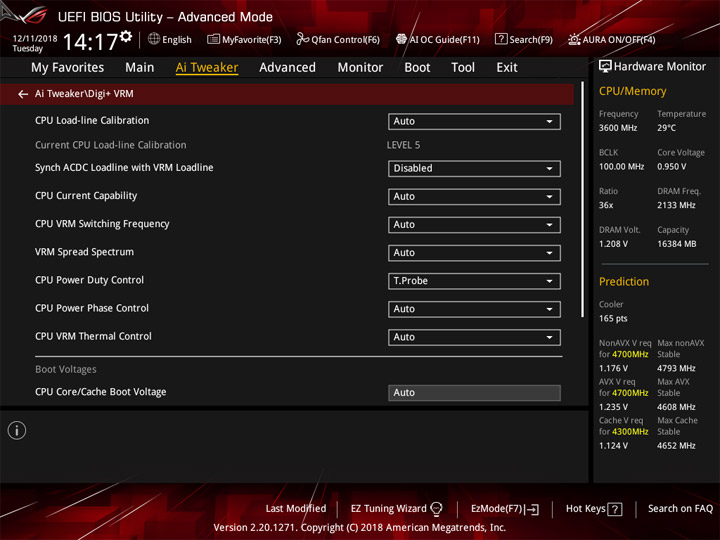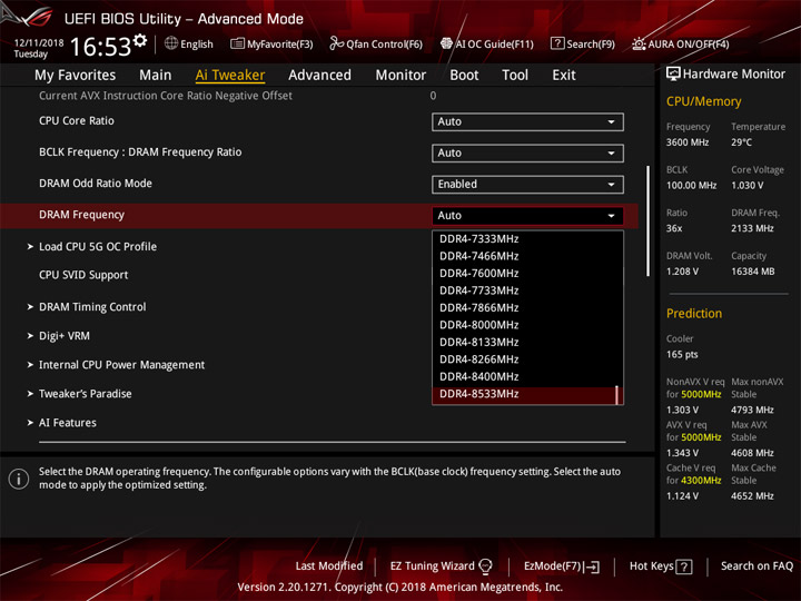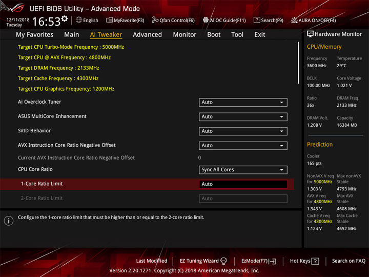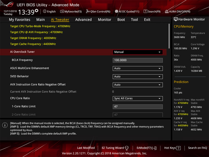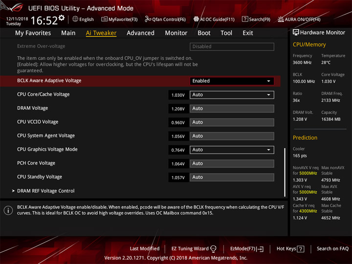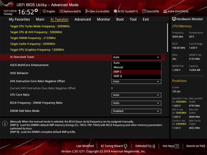 Структура и наполнение рубрики Ai Tweaker осталась прежней — здесь сконцентрированы механизмы под разгон системы. Обновился информационный уголок в правом нижнему углу экрана, там действующие напряжения сменились своеобразным паспортом для используемого ЦП и его кулера.