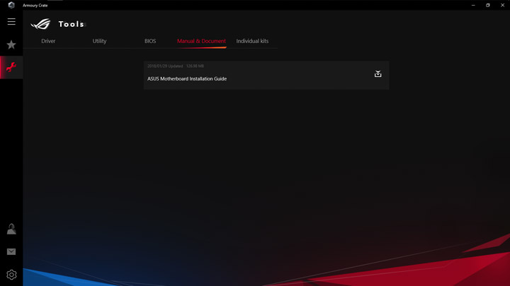Список фирменных инструментов дополнил Armoury Crate, заменивший уже нами виденный прежде ASUS Grid (тогда шла стадия бета-тестирования). Про суть работы детально я расскажу в следующем разделе обзора. Прочие компоненты страницы Tool являются её постоянными пунктами.