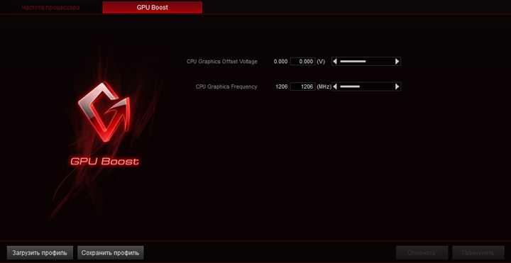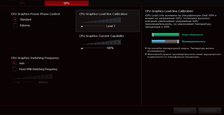 | CPU Graphics Voltage Offset (В) | (+/–) 0,005–0,635 | 0,005 |