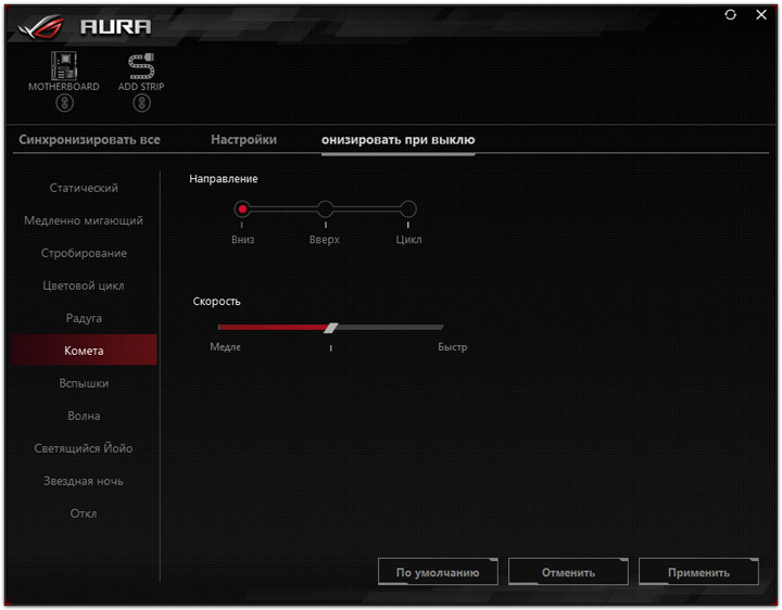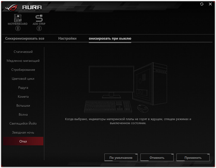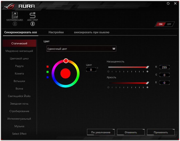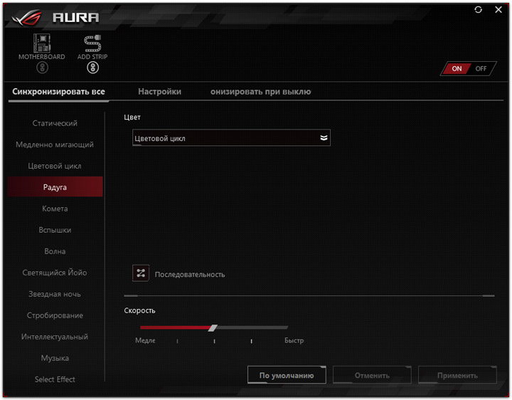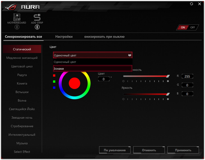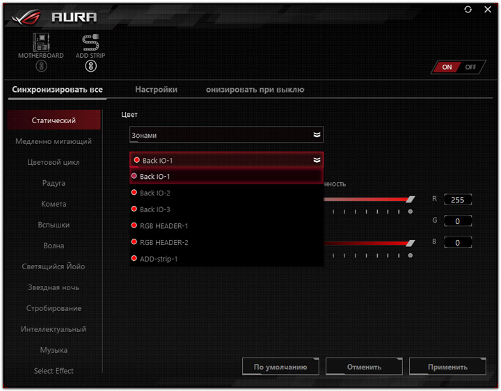 Сектор с подсветкой на плате всего один, его можно условно разбить на три независимых группы, используя ПО для этих целей. Другое оборудование, оснащённое светодиодами, также настраивается именно здесь.