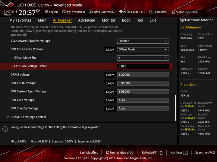 | CPU System Agent Voltage (В) | 0,7–1,8 | 0,00625 |