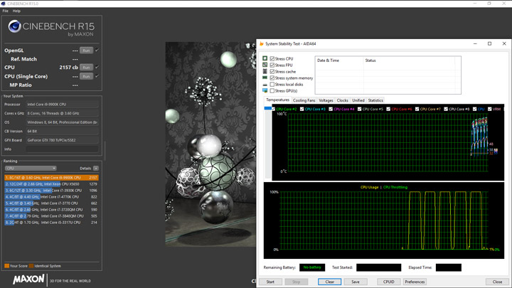 Пятикратное выполнение сценария в Cinebench R15 являлось свидетельством безошибочной работы ПК.