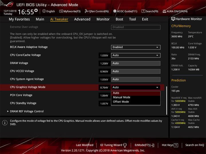 | CPU Graphics Voltage Override (В) | 0,6–1,7 | 0,005 |