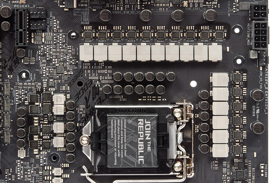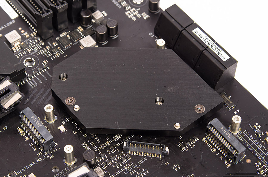 Помимо накладки обращает на себя внимание подсистема охлаждения преобразователя питания процессора, состоящая из трех радиаторов. Подобное обычно встречается на более дорогих продуктах.