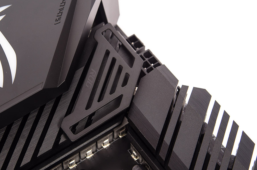 Теперь появилась декоративная накладка, накрывающая охладители чипсета, одного из двух M.2 и преобразователя питания контроллера памяти и цепей ввода-вывода. За счет этой накладки плата стала похожа на решения серии ROG Maximus и даже чем-то напоминает современные продукты конкурентов. Ну или они стали напоминать изделия Republic of Gamers. Форм-фактор ATX с девятью точкам крепления позволят подключать различные кабели и устанавливать модули памяти без опаски погнуть текстолит.