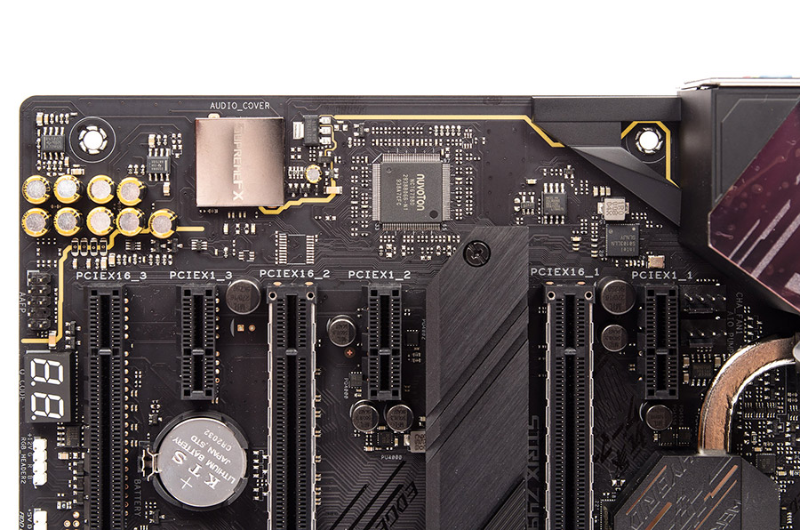 Тракт фирменной звуковой подсистемы SupremeFX отделен от остальных линий протравленными дорожками в слоях текстолита и оснащен специальными емкостями.