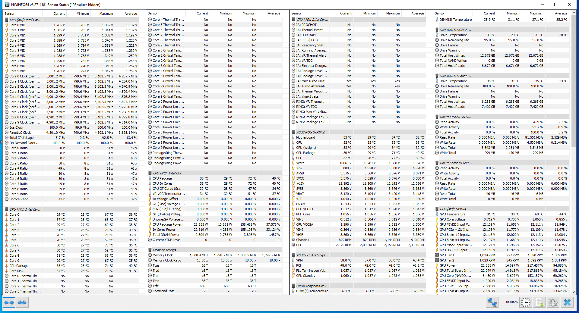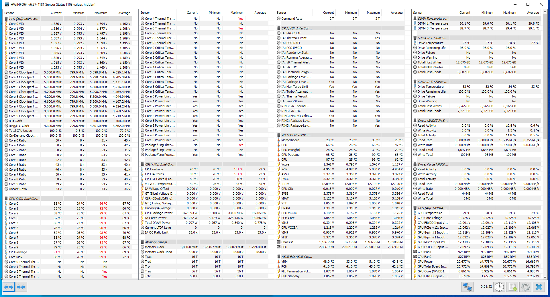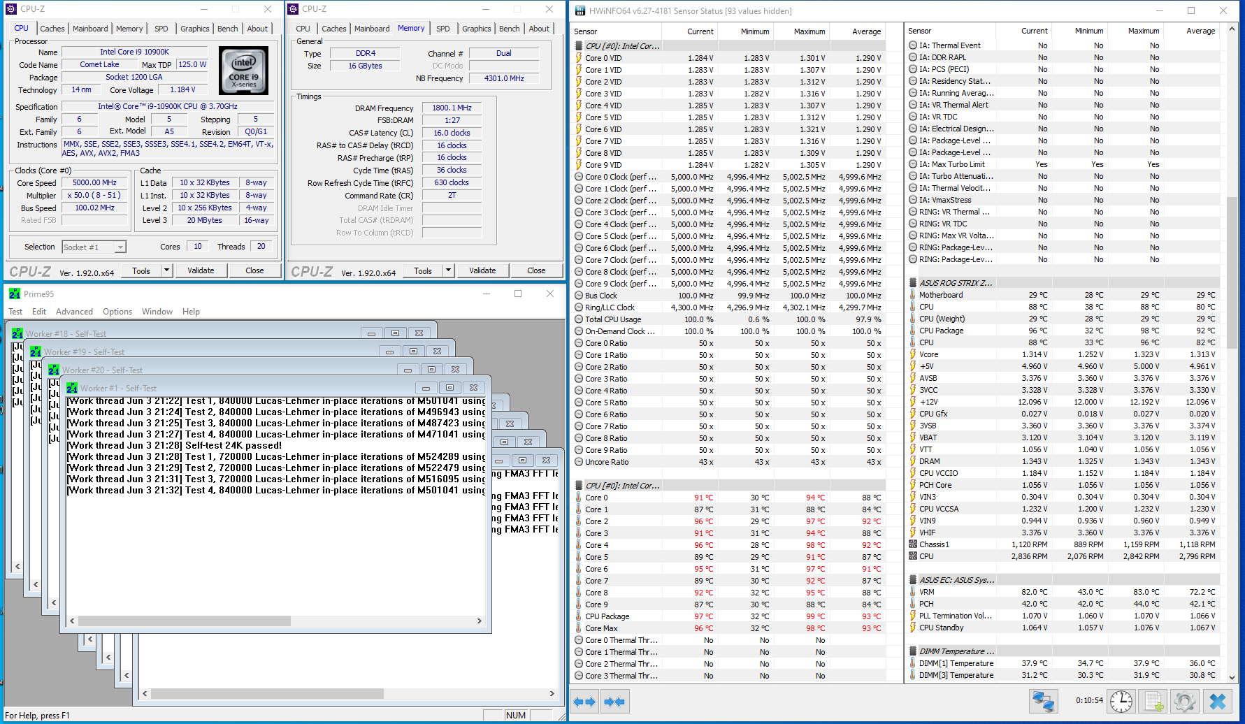 Правда, на него в таком режиме подалось напряжение питания до 1,545 В и Core i9-10900K разогрелся до 99 °C, что в итоге активировало троттлинг у некоторых ядер при стресс-тесте в Prime95.
