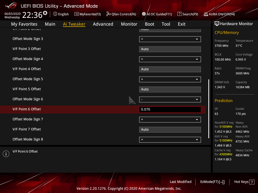 Ai TweakV/F Point Offset позволит настроить напряжение в зависимости от частоты установленного процессора, но использовать эти настройки желательно с общим Offset.