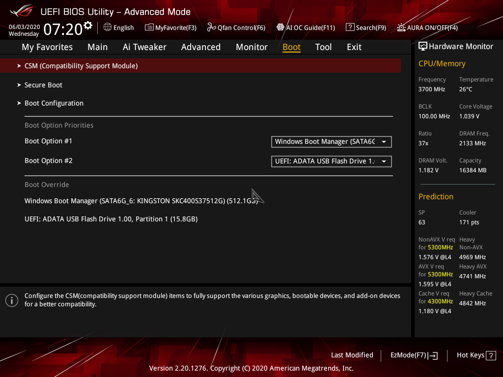 В Boot можно настроить CSM для обеспечения совместимости со старым оборудованием, выбрать накопитель для автоматической загрузки или принудительно загрузиться один раз с той же «флешки».