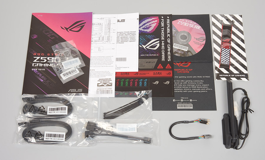 - комплект наклеек с различными изображениями серии ROG Strix, в том числе и для кабелей;