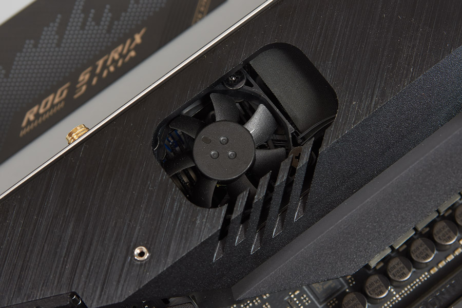 Из картинок на обратной стороне можно узнать о наличии в комплекте поставки новой для ASUS антенны, а также о вентиляторе в недрах подсистемы питания ЦП. Радиатор на M.2 заявлен как тройной, увидим всё чуть позже.