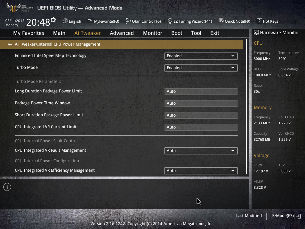 Настройки специфических функций процессора, таких технология повышения быстродействия Turbo Mode или опции уменьшения энергопотребления Enhanced Intel SpeedStep Technology, а также задание лимитов потребляемой мощности находятся в разделе CPU Power Management.
