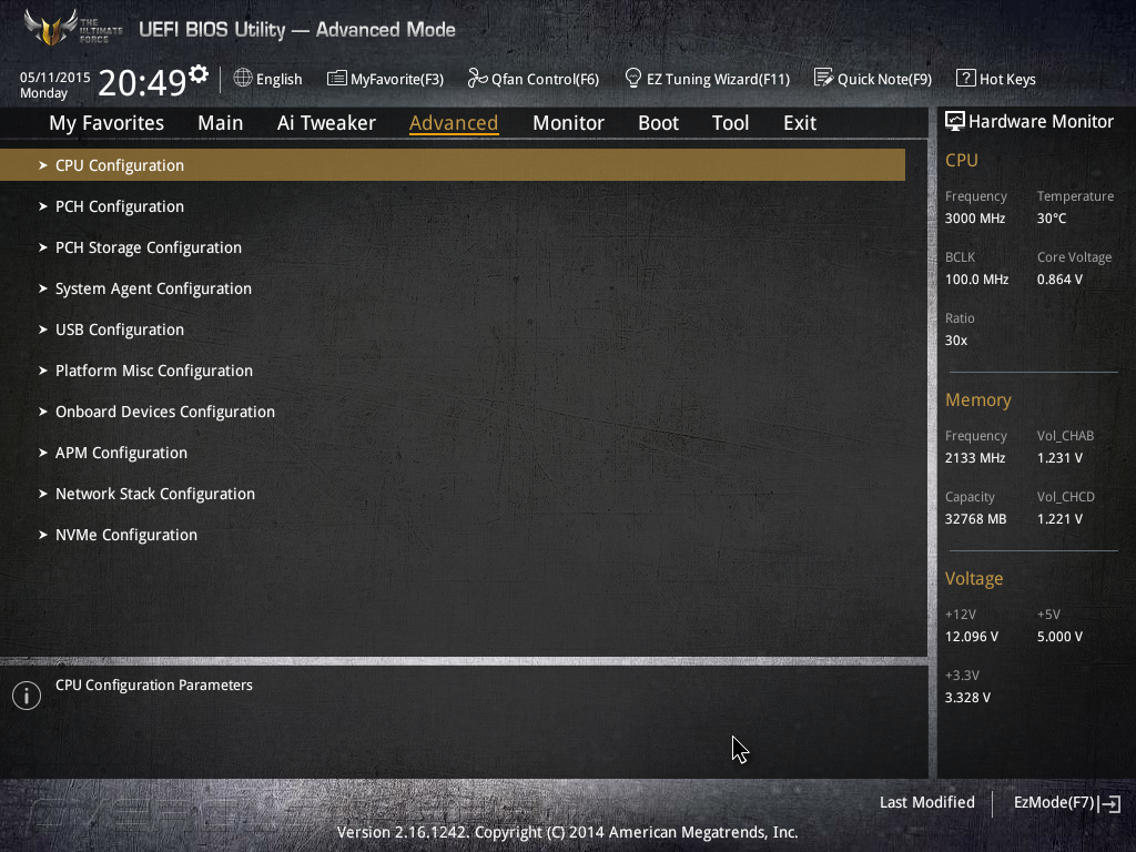 Следующий раздел прошивки — Advanced — отвечает за настройку функций центрального процессора, системной логики и дополнительных контроллеров.