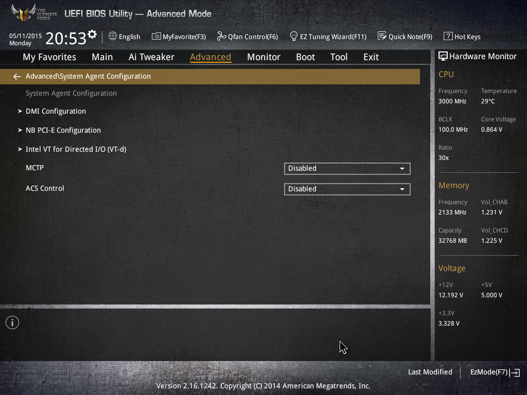 Вкладка System Agent Configuration отвечает за управление встроенным в CPU северным мостом, а в подразделе Onboard Device Configuration задаются режимы работы немногочисленных дополнительных контроллеров.