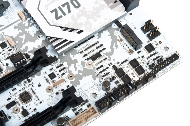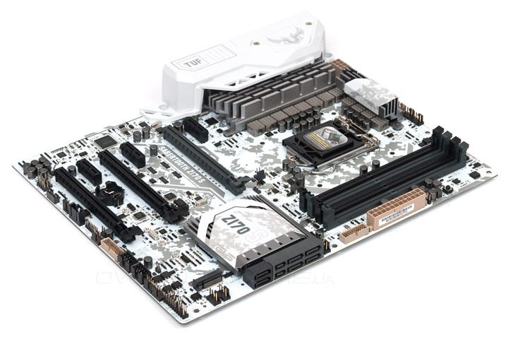 В прошлом сезоне специалисты ASUS представили на суд публики ограниченное издание Sabertooth Z97 Mark S. За основу тогда приняли крепкую Mark 1 и раскрасили её в белый цвет. Стоимость такого решения оказалась немного выше, но поклонников такой ход определённо не смутил. В этот раз в белую «пиксельку» окрасили не старшее решение, а наоборот — младшее, правда, самостоятельной единицы классического тёмного издания на сегодня в продаже нет. То есть в семействе TUF на базе Intel Z170 присутствуют пока две модели.