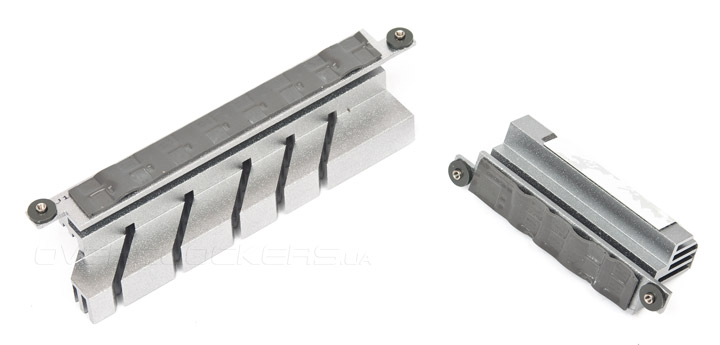 Используется другой тип радиаторов. Их два — каждый ответственен за разную подсистему питания. Они изготовлены из какого-то небывало лёгкого сплава, хотя выглядят весьма убедительно. Термопрокладка их традиционный спутник. Судя по всему, их должна была связывать тепловая трубка, но её нет (образованное углубление–пустота вряд ли будет повышать эффективность теплоотвода).