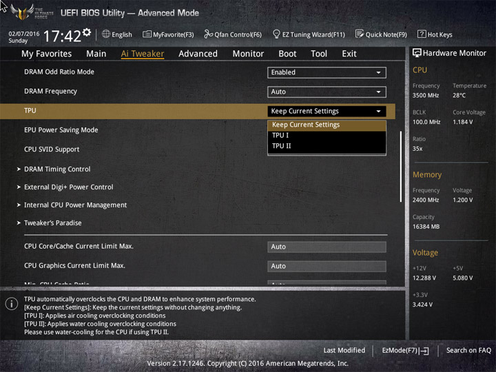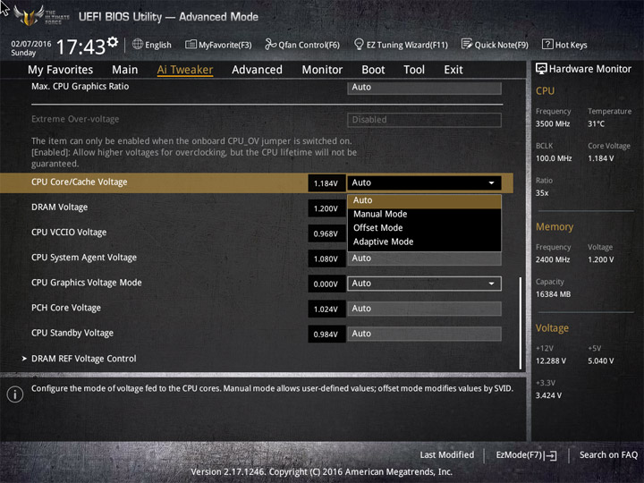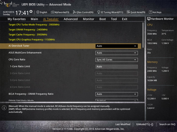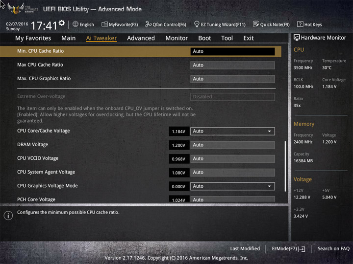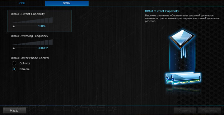 Все пункты, имеющие отношение к разгону компонентов системы, сосредоточены в разделе Ai Tweaker. Различия относительно старшей модели заключаются лишь в аппаратном переключателе режима Extreme Over-voltage. Все остальные строки и подразделы оказались неизменными.