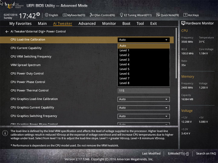 | CPU Load-line Calibration | Auto/Level1…8 | 1 |