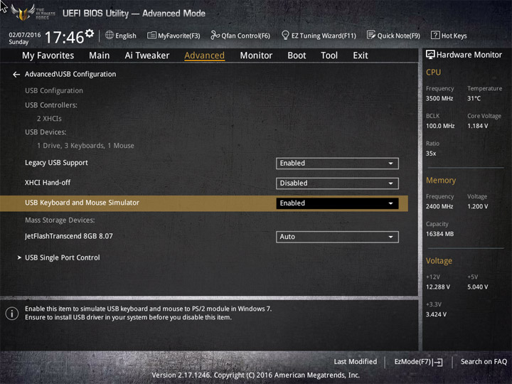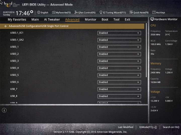 Настройки периферической составляющей сконцентрированы на странице Advanced.