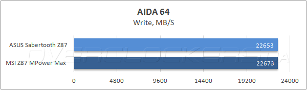 По результатам измерений в Cache & Memory benchmark продуктивность подсистем ОЗУ у обеих системных плат идентичная.