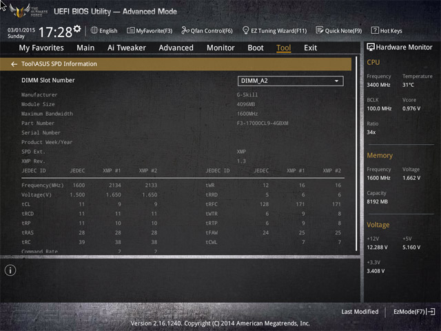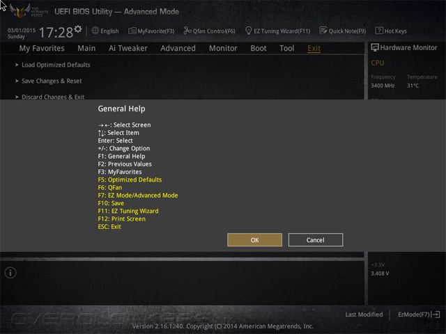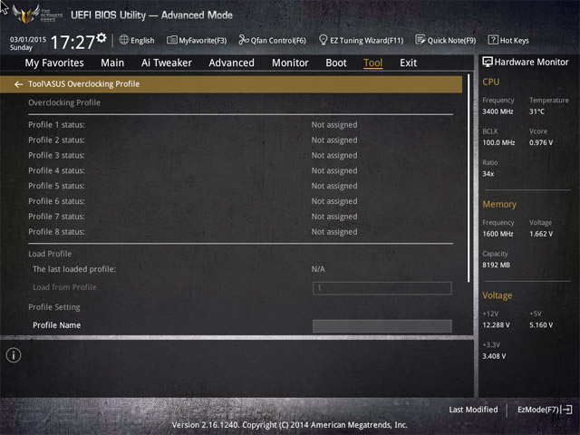 В состав дополнительных инструментов входит мастер по обновлению прошивки, обозреватель профилей SPD и XMP для DRAM, а также механизм, позволяющий сохранить до восьми схем с настройками системы, и это без привлечения дополнительного носителя информации. Замыкает набор вкладок Exit, где нет ничего необычного.