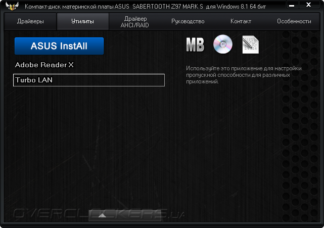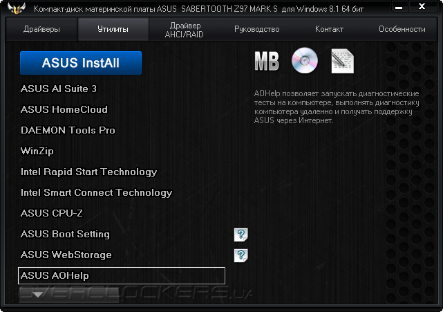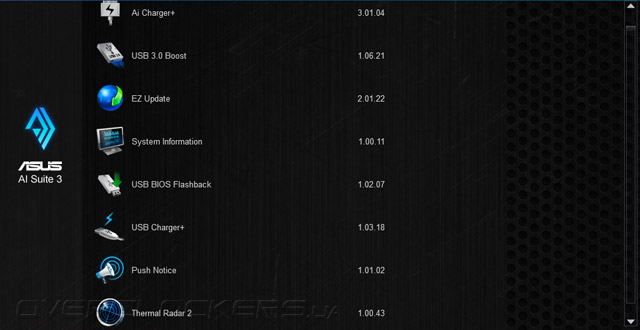 Фирменные утилиты от ASUS объединены в комплекс Ai Suite 3. Для Sabertooth Z97 Mark S набор оказался небольшим, но главный атрибут — Thermal Radar 2 — присутствует в обязательном порядке. Инсталляция прошла безболезненно.