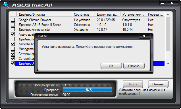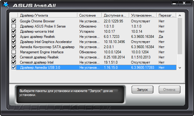 В окне установщика драйверов список из пунктов не уместился в обозримую область, набор представленных здесь версий полностью исчерпывающий для начала работы с системой. Установка выбранных завершилась корректно.
