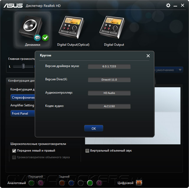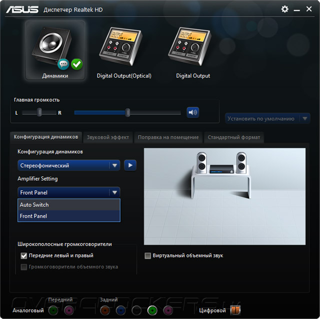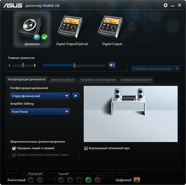 Звуковая подсистема довольствуется лишь фирменным конфигуратором работы от Realtek. В его возможности включены вариативные сценарии воспроизведения звукового материала, опирающиеся на профиль выбранного устройства. Кроме этого, дополнительно можно активировать виртуализацию звучания. Для наушников актуальным будет привлечение к использованию операционного усилителя. Это также сказывается на финальной картине звучания.
