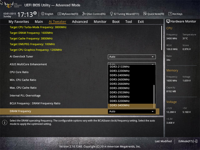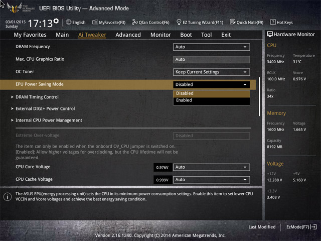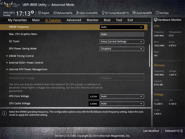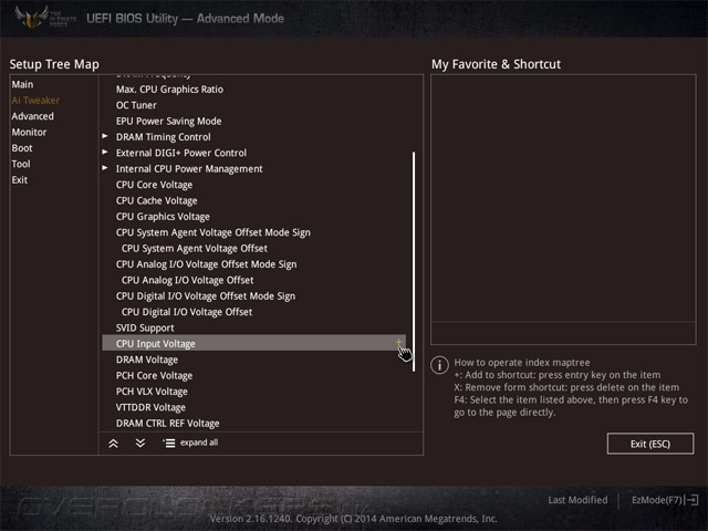 На странице Ai Tweaker находится набор инструментов, необходимый для разгона или тонкой настройки системы. Пределы значений кочуют из одной модели к другой, а статус текущей обязывает не сомневаться в широком диапазоне изменяемых напряжений, памятуя также о возможности форсирования Overvoltage. Большое количество пунктов доступно на вкладке External DIGI+ Power Control, обусловлено это серьёзным подходом к реализации систем стабилизации питания ЦП и ОЗУ.