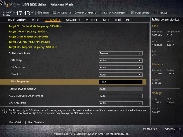 | CPU Core Ratio (Multiplier) | 8–80 | 1 |