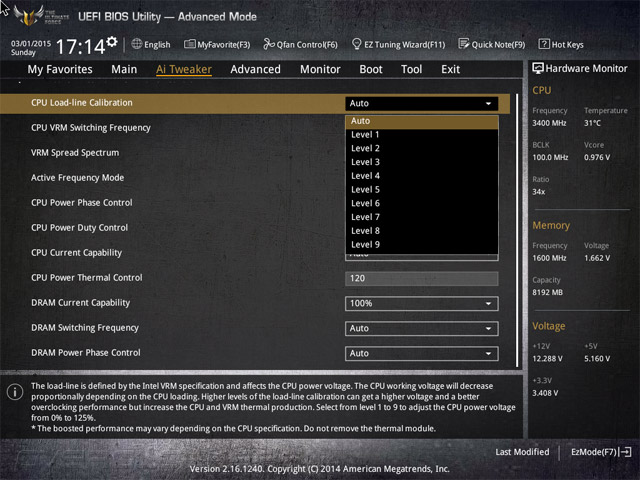 | CPU Load-line Calibration | Auto/Level1…9 | 1 |