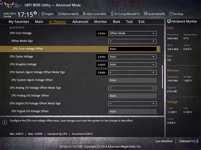 | CPU Core Voltage Offset (В | (+/–) 0,001–0,999 | 0,001 |