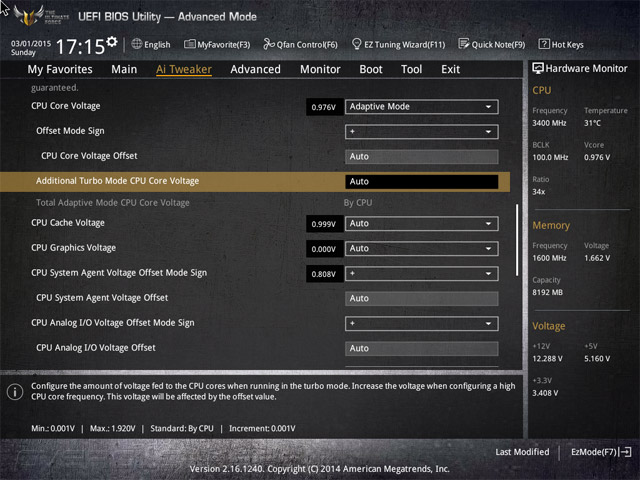 | DRAM Voltage (B) | 1,2–1,92 | 0,005 |