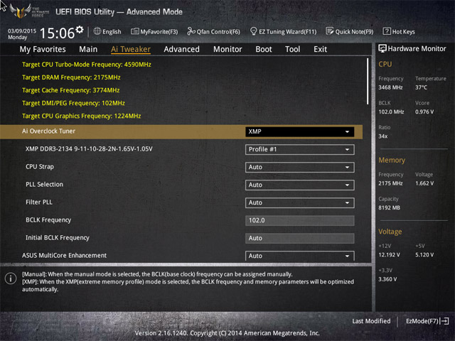 Перед началом тестирования единственные коррективы, вносимые в UEFI, — это форсирование профиля XMP для DRAM. При этом пользователю предлагается дополнительно повысить ещё и частоту ЦП, исключив тем самым работу технологии Turbo Boost. Согласившись, можно добиться функционирования Core i5-4670K на частоте 3,8 ГГц, как и на большинстве протестированных плат.
